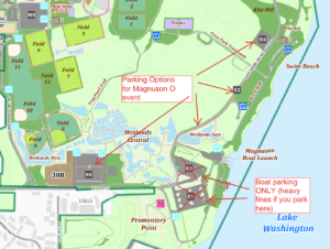 Welcome to the opening event of the 2025–26 Winter League season! We are back at Magnuson Park. The park is a flat and relatively fast venue with complex navigation in areas of dense features. Terrain includes open grasslands, restoration zones, wooded sections, and wetland boundaries. Main trails are relatively accurate, but as always, trail visibility varies, especially in grassy areas, and expect some indistinct paths and unmapped trails. Courses will have a “long sprint” feel, generally somewhat shorter and with more controls, since this is the first event of the season, with an added twist for the advanced courses (see below).